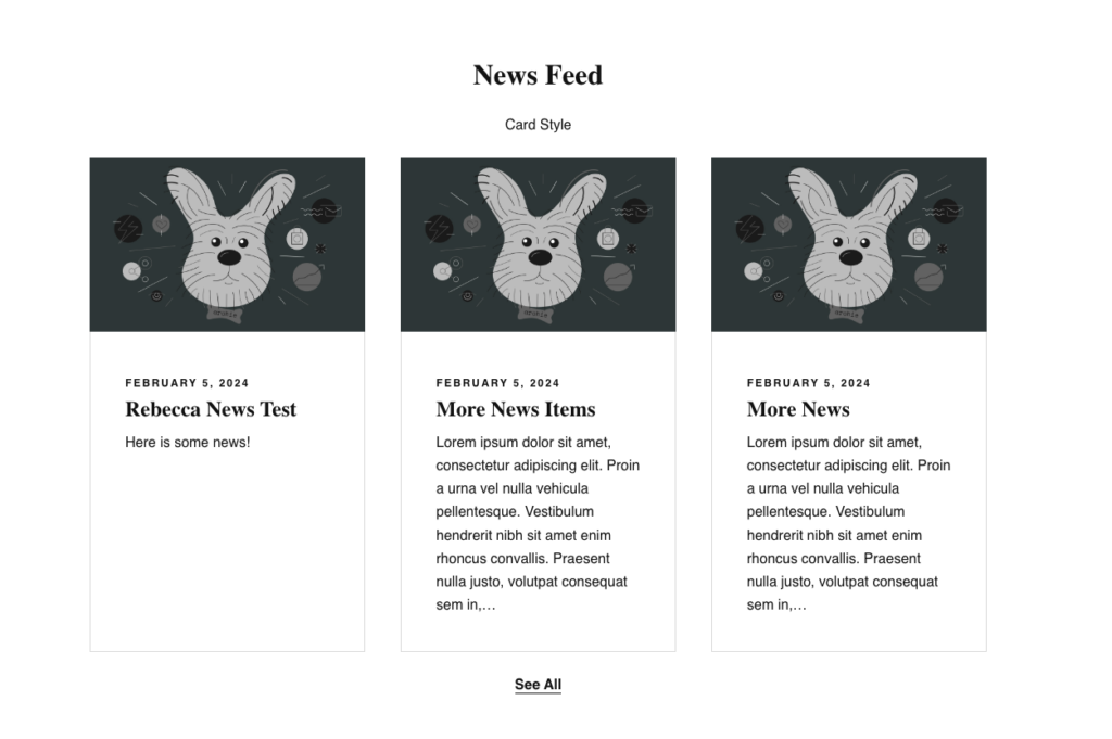 The news feed component, now has an additional setting to display in a card-style layout instead of the default feed-style layout. You’ll see a new radio button option on the News Feed component. This hasn’t changed the way the component is administered, but has added new flexible layout options!